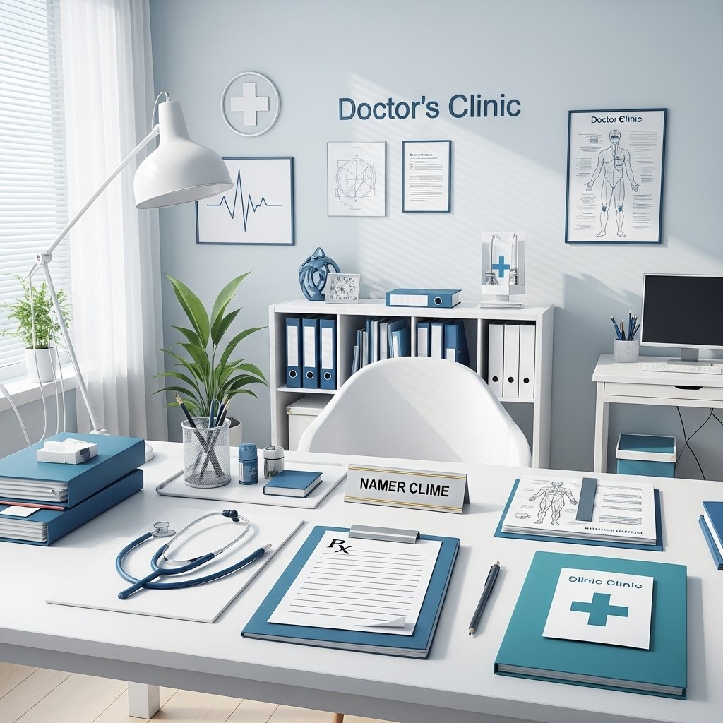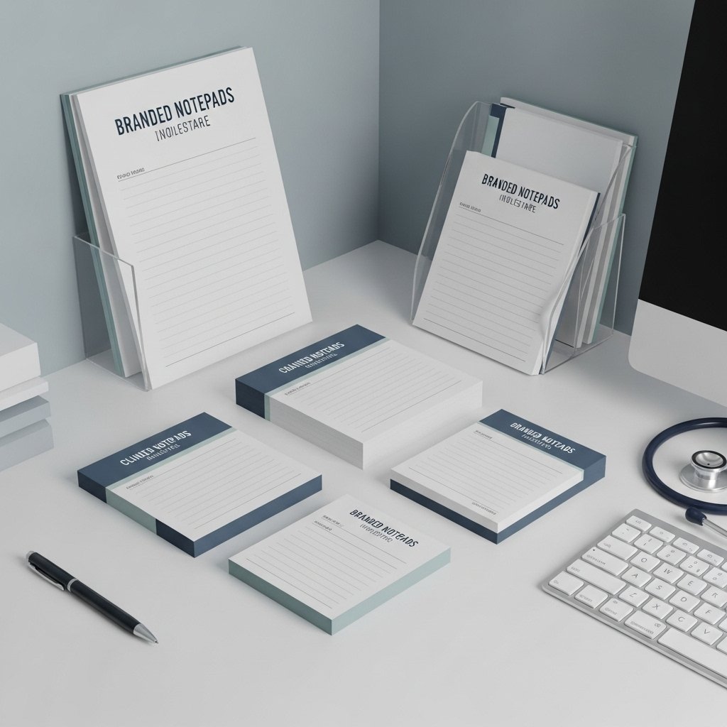 Clinic-branded stationery for prescriptions, referrals, and communication.