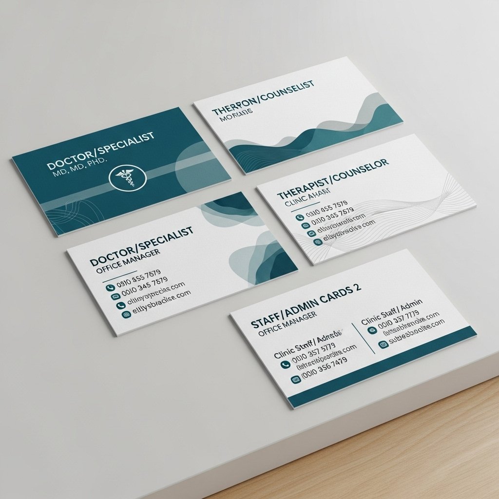 Professional cards for doctors, specialists, therapists, and clinic staff.