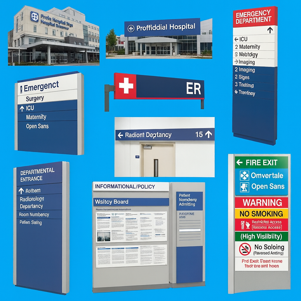 Wayfinding signs, reception signs, warning labels, waiting room instructions, and more.