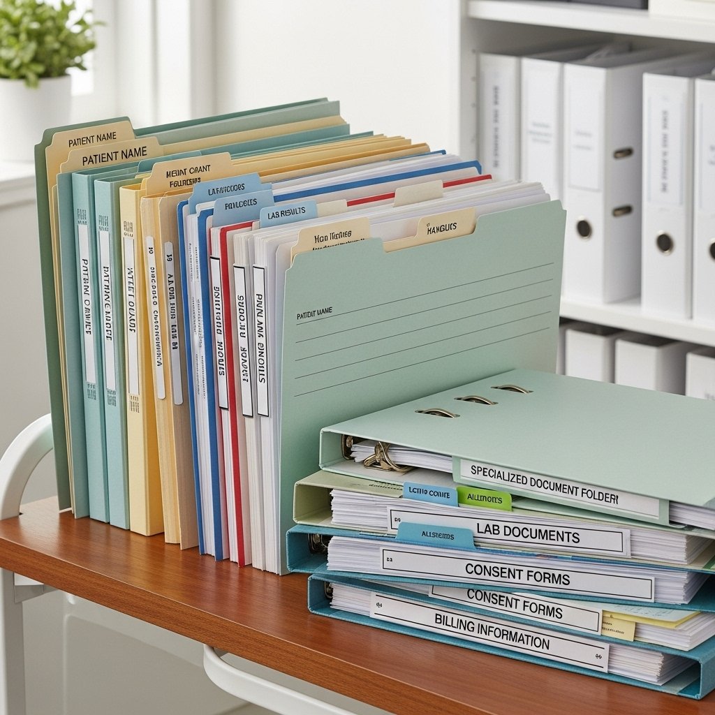 Durable, organized folders for health records, lab documents, and patient files.
