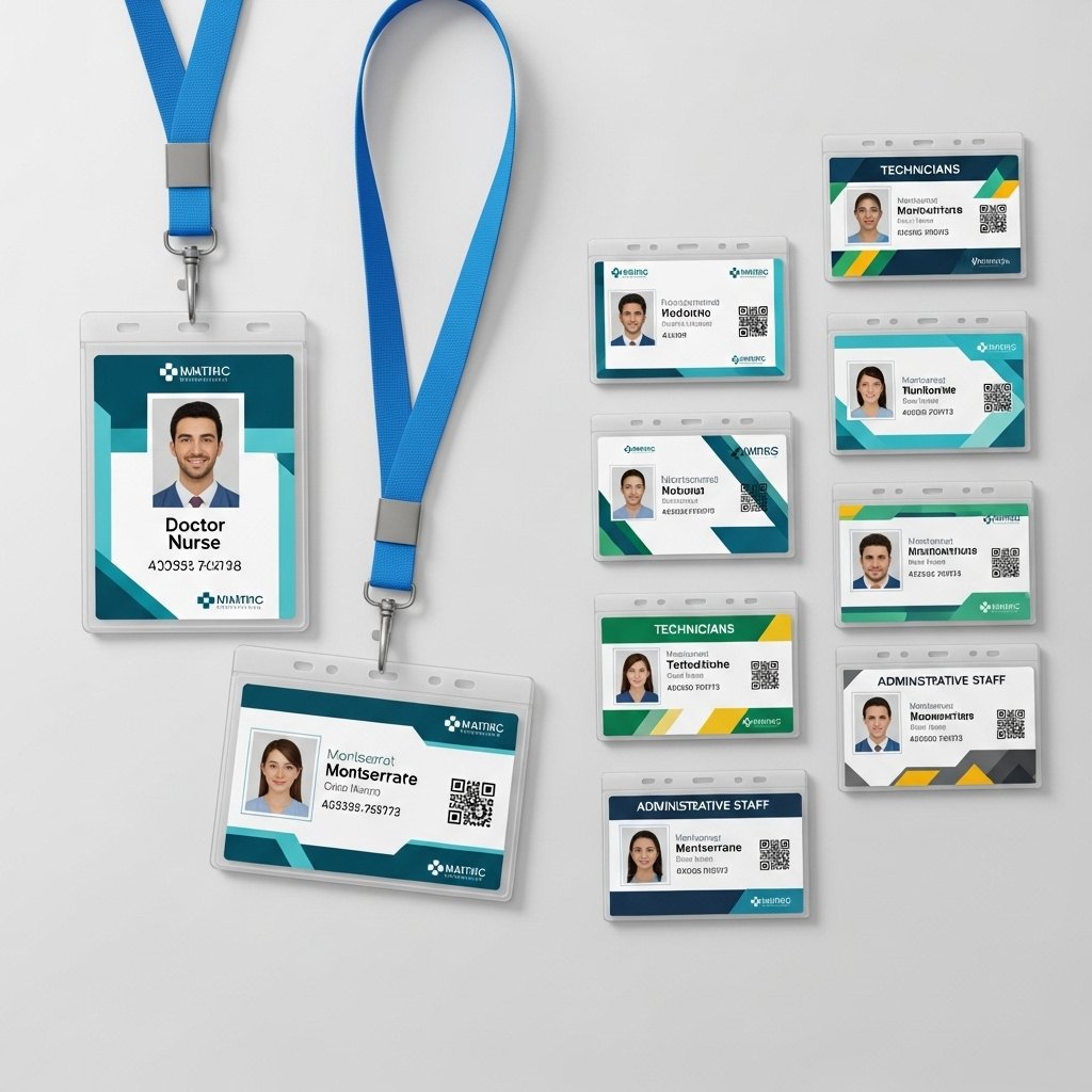 Custom staff ID cards for doctors, nurses, technicians, administrative staff.